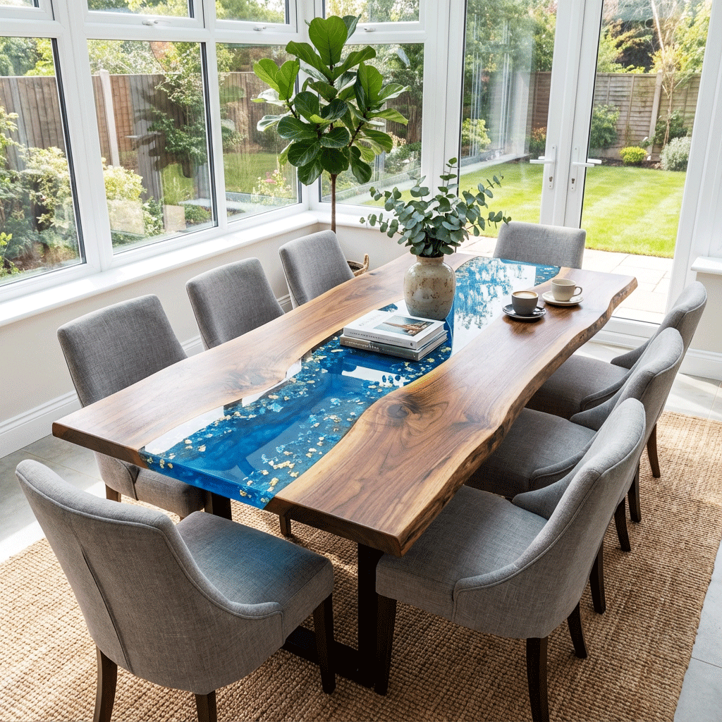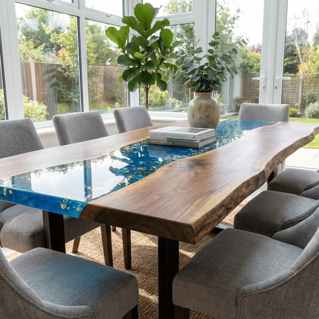 Artisanal Resin Work: Our "River" is created using high-grade, UV-resistant epoxy resin. Whether it's a deep ocean blue, a forest green, or a crystal-clear flow, the depth and clarity are unmatched.